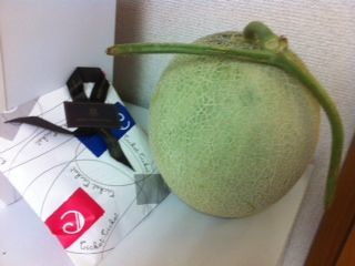 メロン1玉とお菓子を差し入れしていただきました